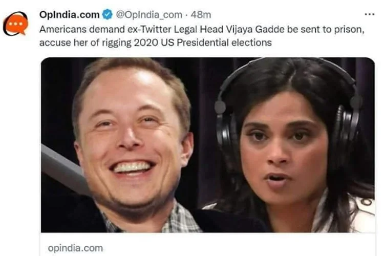 Cô Ấn Độ Vijaya Gadde, cựu Admin Twitter trong năm 2021 đã nhận được số tiền lớn hỗ trợ từ những account kín cùng với tiền lương lên hơn 17 triệu đô. Khi Elon Musk tiếp quản Twitter thì một trong những nhân vật đầu tiên được an ninh mời (đuổi) ra khỏi cửa chính là cô Vijaya Gadde.