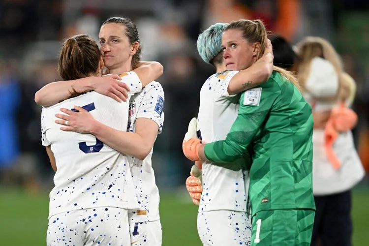 Cầu thủ Mỹ an ủi nhau trước sự thất bại ngoài sự tưởng tượng của họ. Sự thất bại mà Alex Morgan gọi là "Giấc mộng kinh hoàng" và Megan Rapinoe gọi là "Như một chuyện diễu dở."