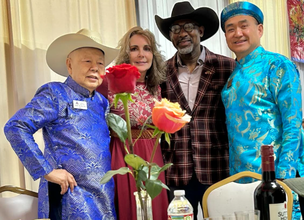 Thị trưởng Haltom City Tiến sĩ Trương Minh Ẩn và Nghị viên Phạm Long trong chiếc áo dài chụp chung tấm hình kỷ niệm với hai viên chức thành phố Arlington