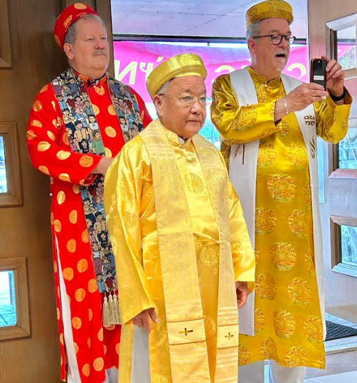 Áo dài của Cha Bề Trên Dòng Vinh Sơn trong ngày Tết tại Giáo xứ Thánh Phêrô