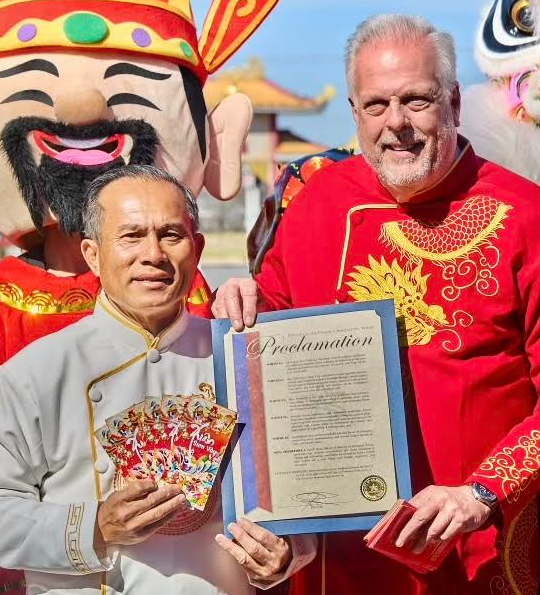 Thị trưởng Arlington Jim Ross trao tặng Proclamation cho chủ nhân David Đặng