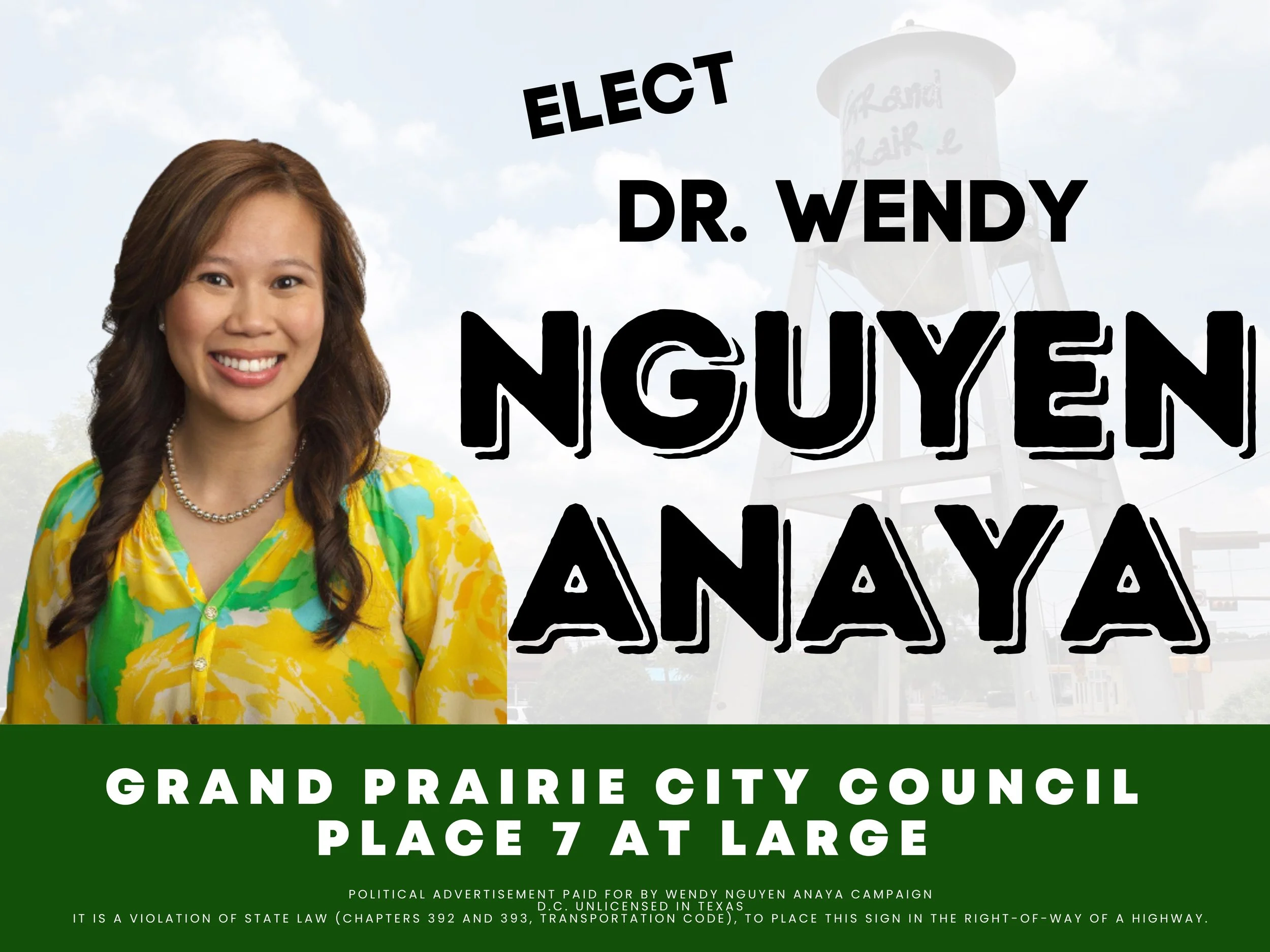 Ủng hộ và bỏ phiếu cho Ứng Cử Viên vùng 7 thành phố Prairie - Nữ Bác sĩ Wendy Nguyễn Anayaa