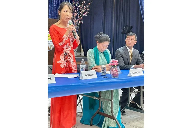Cô Nguyễn Thục Vy phát biểu trong ngày ứng cử viên ra mắt đồng hương tại Trụ sở Cộng Đồng Dallas