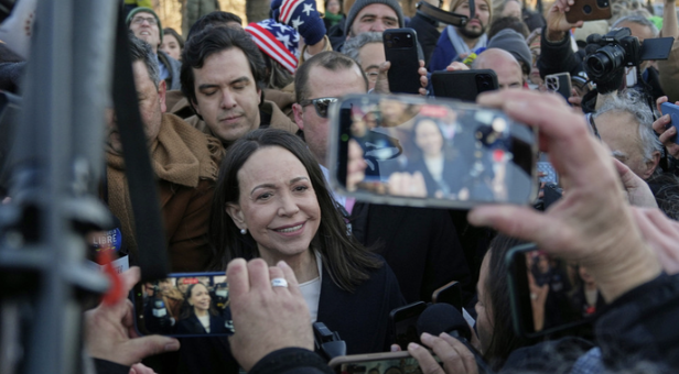 Bà Maria Corina Machado rời Quốc hội Mỹ hôm 15-1. Ảnh: AP