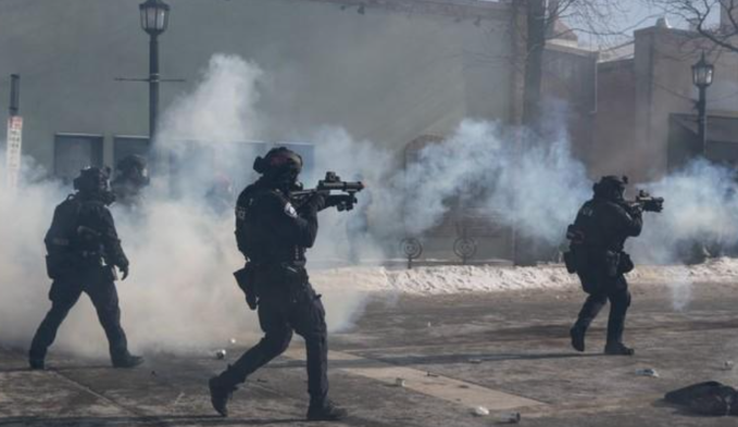 Cảnh tượng đụng độ giữa cảnh sát và dân thường tại hiện trường vụ bắn chết công dân Mỹ ở thành phố Minneapolis (bang Minnesota) hôm 24.1
