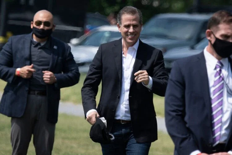 Ông Hunter Biden đi bộ đến chiếc trực thăng Marine One trên bãi đậu Ellipse bên ngoài Tòa Bạch Ốc ở Hoa Thịnh Đốn vào ngày 22/05/2021. (Ảnh: Brendan Smialowski/AFP/Getty Images)