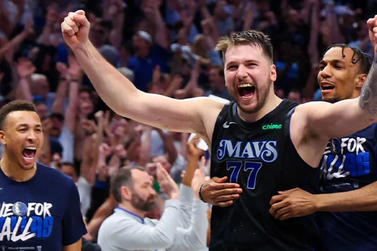 Luka Doncic và các đồng đội ăn mừng tấm vé lọt vào chung kết miền Tây NBA Playoffs 2024