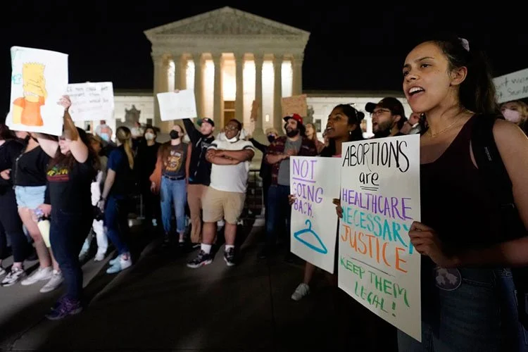 Ở Hoa Thịnh Đốn chỉ trong một đêm, những người biểu tình ủng hộ phá thai đã hô vang những cụm từ như “phá thai là chăm sóc sức khỏe” và “chống phá thai là việc của [nói tục] 50 năm trước.”