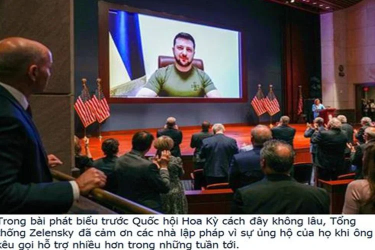 Phát biểu trước QH Hoa Kỳ qua video, Tổng thống Ukraine nói rằng đất nước của ông biết ơn sự hỗ trợ của Mỹ trong cuộc chiến cho đến nay.