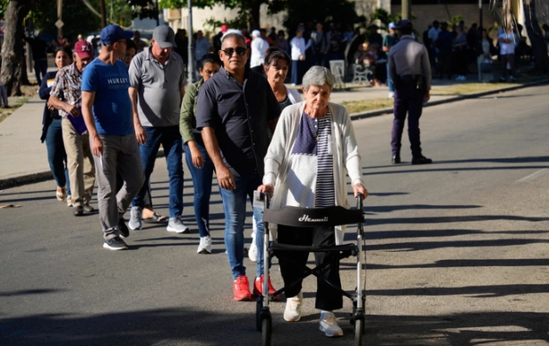 Người dân xếp hàng bên ngoài Đại sứ quán Mỹ tại Havana - Cuba. Ảnh: AP
