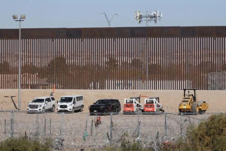 Lực lượng Vệ binh Quốc gia Texas bảo vệ biên giới giữa El Paso, Texas, Hoa Kỳ và Ciudad Juarez, Chihuahua, Mexico, bằng các cuộn dây thép gai vào ngày 9/12/2024.