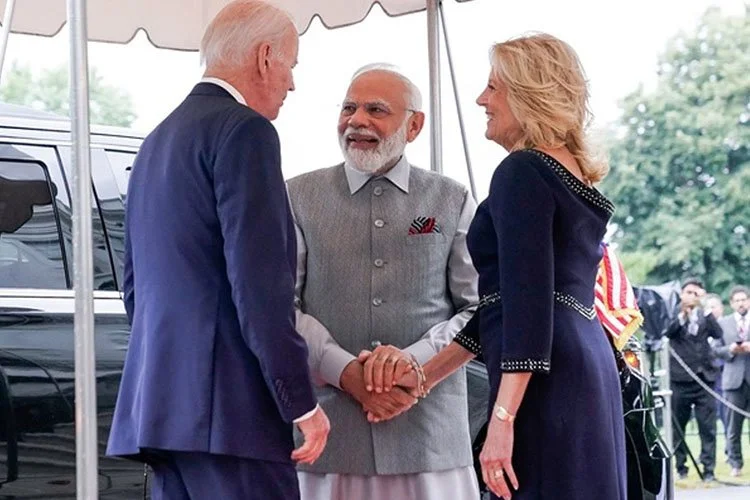 Tổng thống Mỹ Joe Biden và đệ nhất phu nhân Jill Biden chào đón Thủ tướng Ấn Độ Narendra Modi tới Tòa Bạch Ốc ngày 21.6
