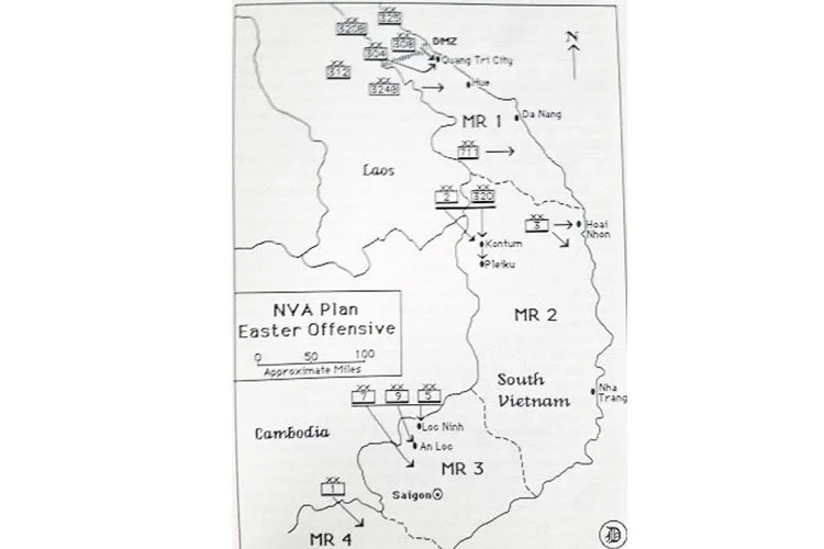 Ngày 30 tháng Ba năm 1972, quân đội Bắc Việt phóng ra một trận tấn công mới, quy mô với nhiều đơn vị lớn cấp sưđoàn,cố gắng tìm chiến thắng bằng giải pháp quân sự (võ lực). Hà Nội xử dụng khoảng 100.000 quân với 10 sưđoàn, cùng nhiều trung đoàn độc lập, được hàng trăm chiến xa, cùng các đơn vị pháo binh yểm trợ.Đa số là các sưđoàn chính quy Bắc Việt, không như trận tấn công bất ngờ Tết Mậu Thân, đa số là các đơn vị Việt Cộng trong miền Nam.