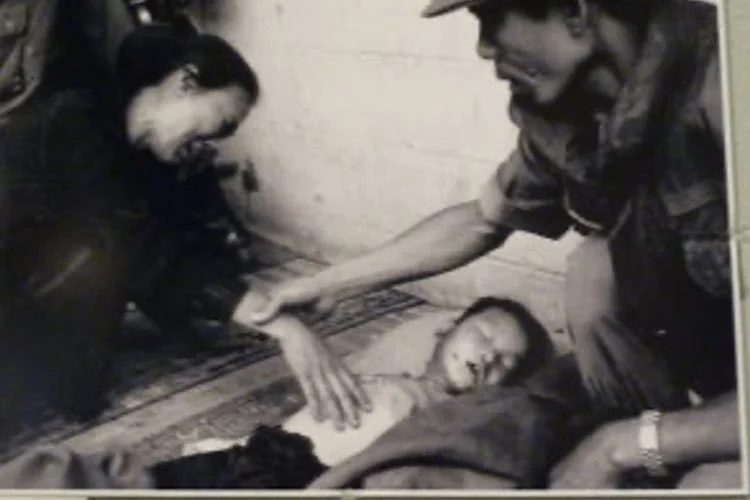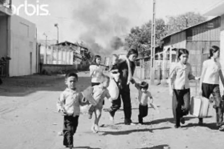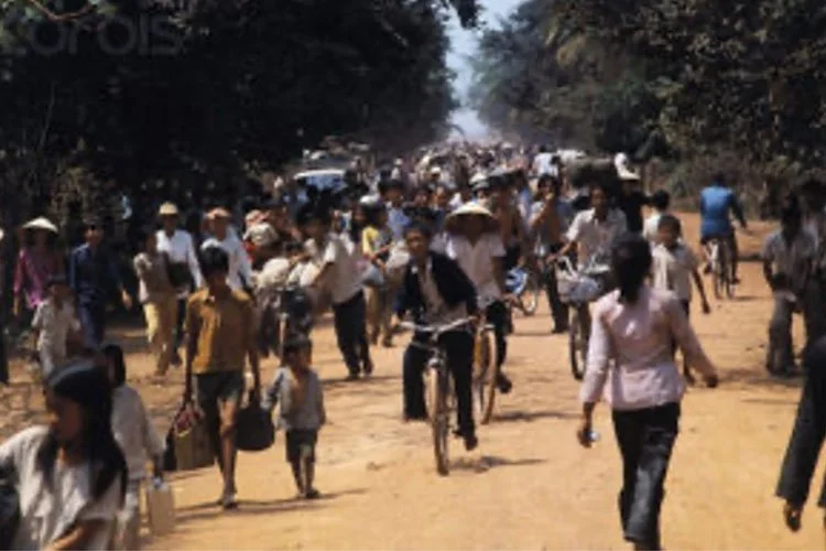Họ không biết sẽ đi về đâu nhưng cứ đi, có những cụ già phải có người sốc nách, có những trẻ thơ mếu máo, có những em bé vật vờ trên tay người mẹ đang bước đi lảo đảo, có cả những thây người gục ngã và bị người khác vội vã đạp lên vì không một ai có thì giờ nhìn lại khi đoàn quân “giải phóng” đang đuổi sát sau lưng.