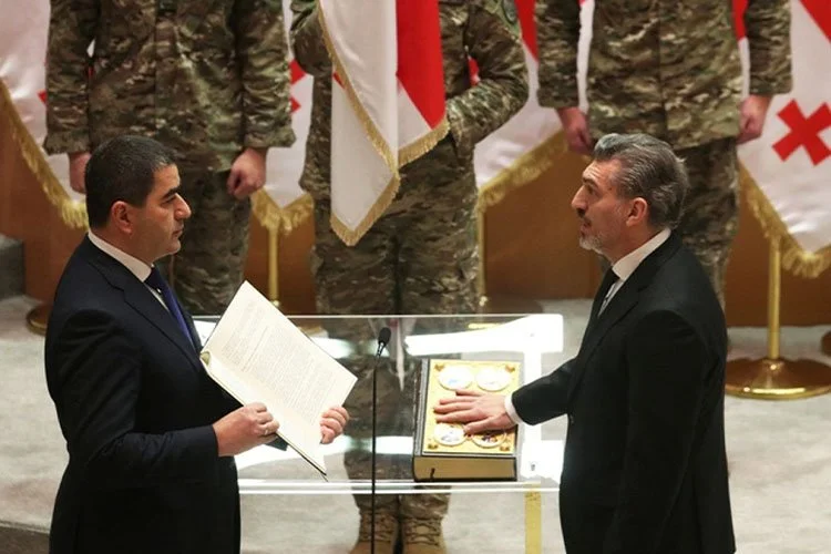Ông Kavelashvili (phải) tuyên thệ nhậm chức Tổng thống Georgia tại trụ sở quốc hội ngày 29.12