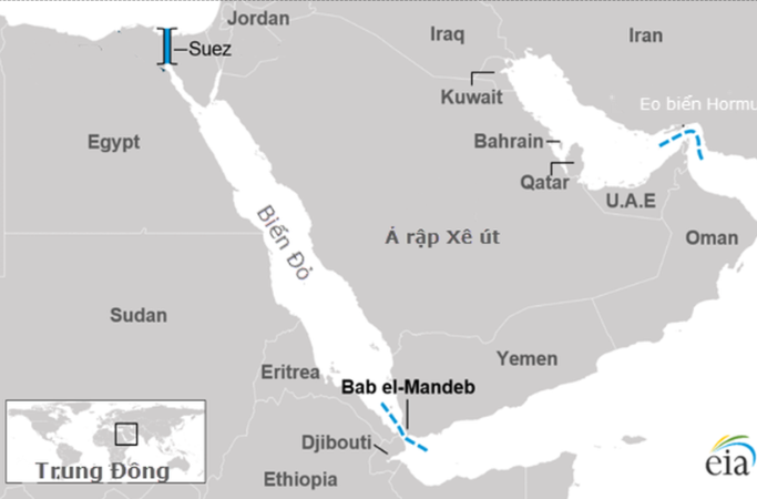 Houthi có thể kiểm soát lối vào biển Đỏ, một tuyến giao thông huyết mạch ở khu vực Trung Đông (Ảnh: EIA).