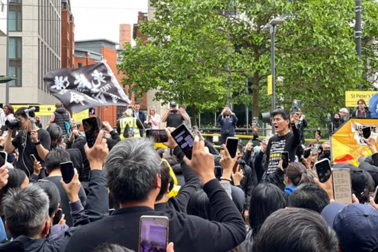 Hàng ngàn người Hồng Kông ở Manchester trong cuộc biểu tình kỷ niệm Sự kiện ngày 12/06. (Ảnh: Jack, Tian Yu/The Epoch Times)