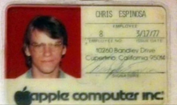 Thẻ nhân viên chính thức của Chris Espinosa vào tháng 3/1977 tại Apple. Ảnh: Reddit