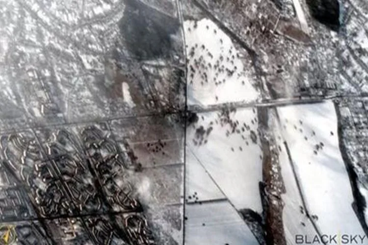 Một hình ảnh vệ tinh cho thấy hậu quả của các cuộc pháo kích ở ngoại ô phía đông bắc Kharkiv, Ukraine ngày 26 tháng 2 năm 2022