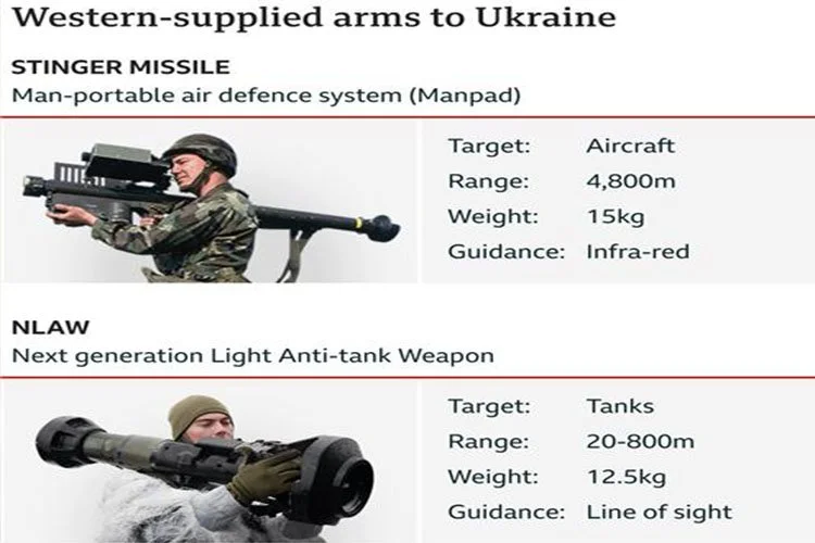 Anh và Mỹ đã cung cấp vũ khí cho Ukraine trước khi cuộc xâm lược bắt đầu vào ngày 24 tháng 2, với việc Anh cung cấp 2.000 tên lửa chống tăng hạng nhẹ (Nlaw).