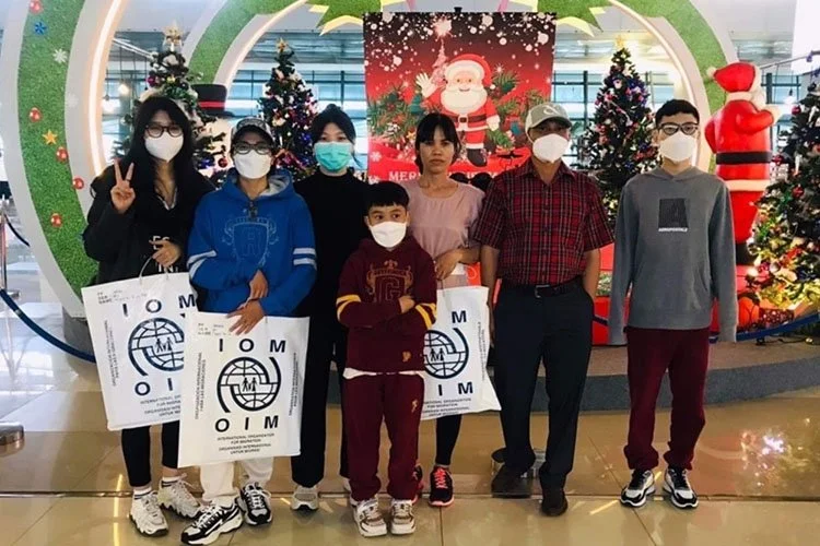 Một gia đình trong nhóm 20 người tị nạn Việt Nam từ Indonesia đến Canada. Photo Tran Thi Lua.