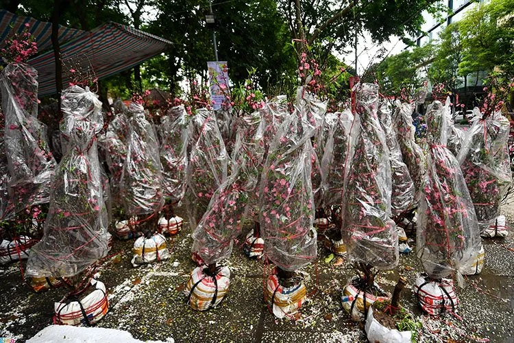 Năm nay, tiểu thương bán hoa trưng bán nhiều hoa đào được chuyển từ phía Bắc vào để phục vụ nhu cầu chơi Tết. Các loại đào đa dạng về kiểu dáng, kích thước và giá cả, tuy nhiên, đào Nhật Tân vẫn cùng chung số phận với những loại hoa khác khi lượng tồn dư còn khá lớn.
