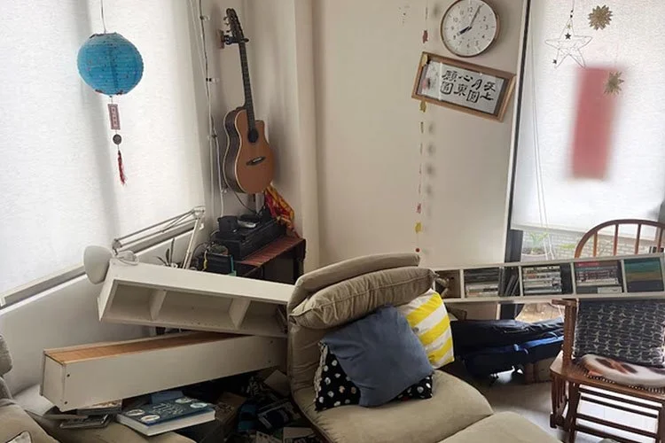 Một căn hộ ở thành phố Tân Bắc (Đài Loan) bị hư hại sau trận động đất vào sáng 3.4