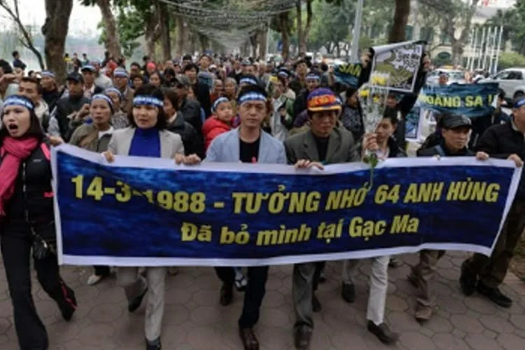 (Hình: Người dân Hà Nội tưởng niệm 64 tử sĩ Gạc Ma bị Trung Quốc giết hôm 14/3/1988.)