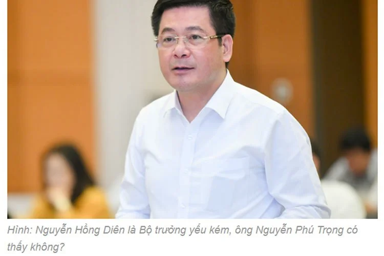 Hình: Nguyễn Hồng Diên là Bộ trưởng yếu kém, ông Nguyễn Phú Trọng có thấy không?