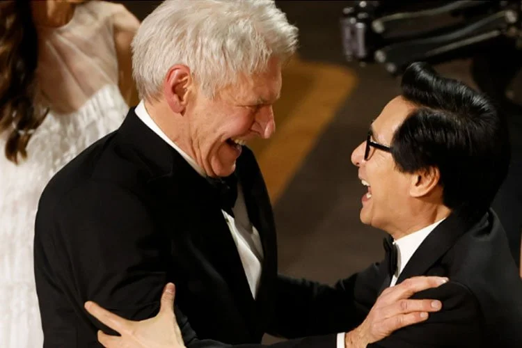 Quan Kế Huy hội ngộ Harrison Ford trên sân khấu Oscar 2023. Ảnh: Academy